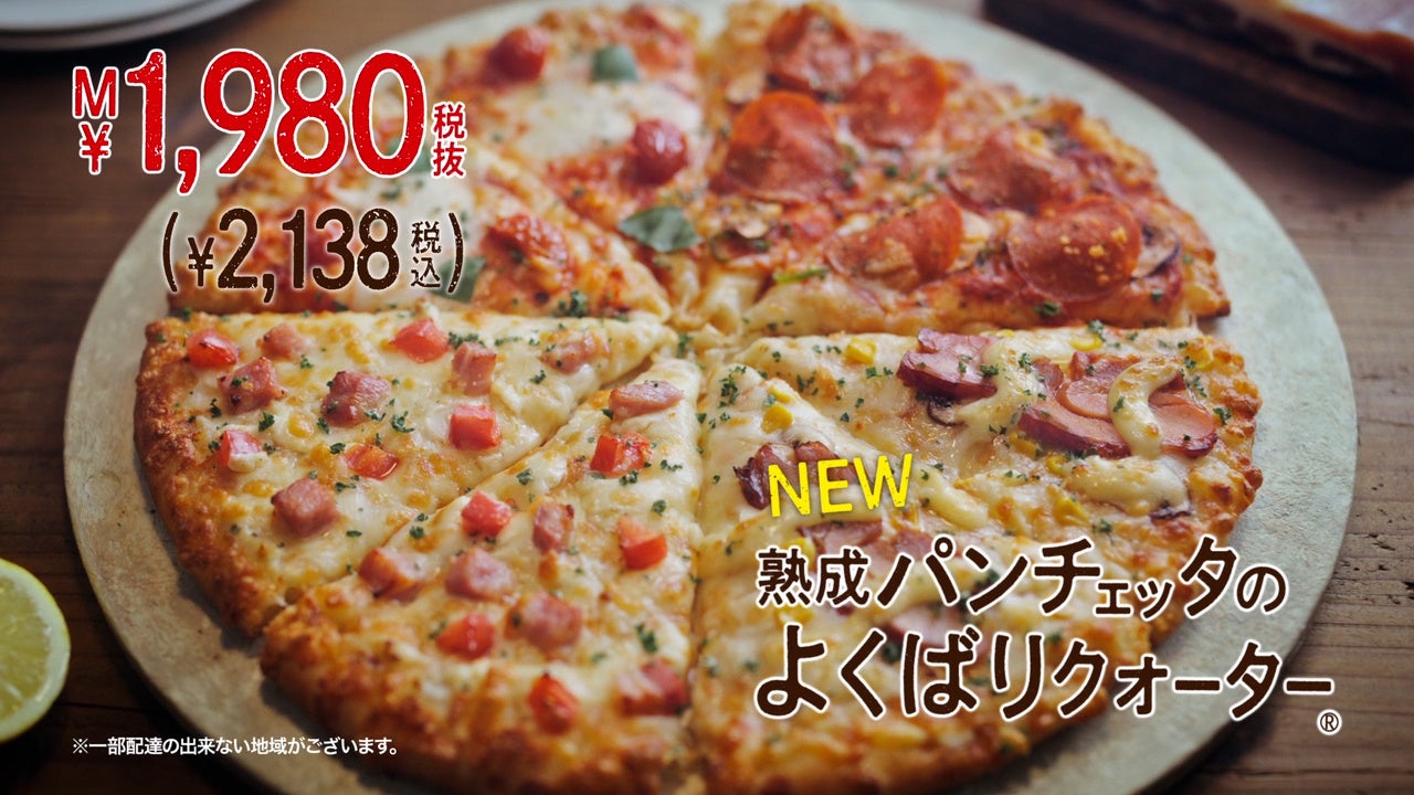 今回は人気メニューの「テリヤキチキン」、「マルゲリータ」、「ペパロニラバー」に加え、熟成パンチェッタと瀬戸内レモンソースが相性抜群の新作「熟成パンチェッタと瀬戸内レモンソース」が一枚になった『熟成パンチェッタのよくばりクォーター』が新登場!美味しそうな調理工程も交えながら、豪快な食べっぷりでその魅力を伝える二人。あまりの美味しさにピザで頭がいっぱいになる伊達さんと、そんな伊達さんで頭がいっぱいになる富澤さんの仲睦まじいシーンもお見逃しなく。