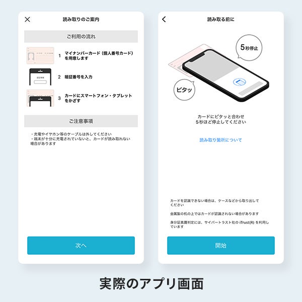 公的個人認証サービスは、マイナンバーカードに搭載された電子証明書を読み取ることで、口座開設時に第三者によるなりすましや文書が改ざんされていないことの確認を行うためのサービスです。