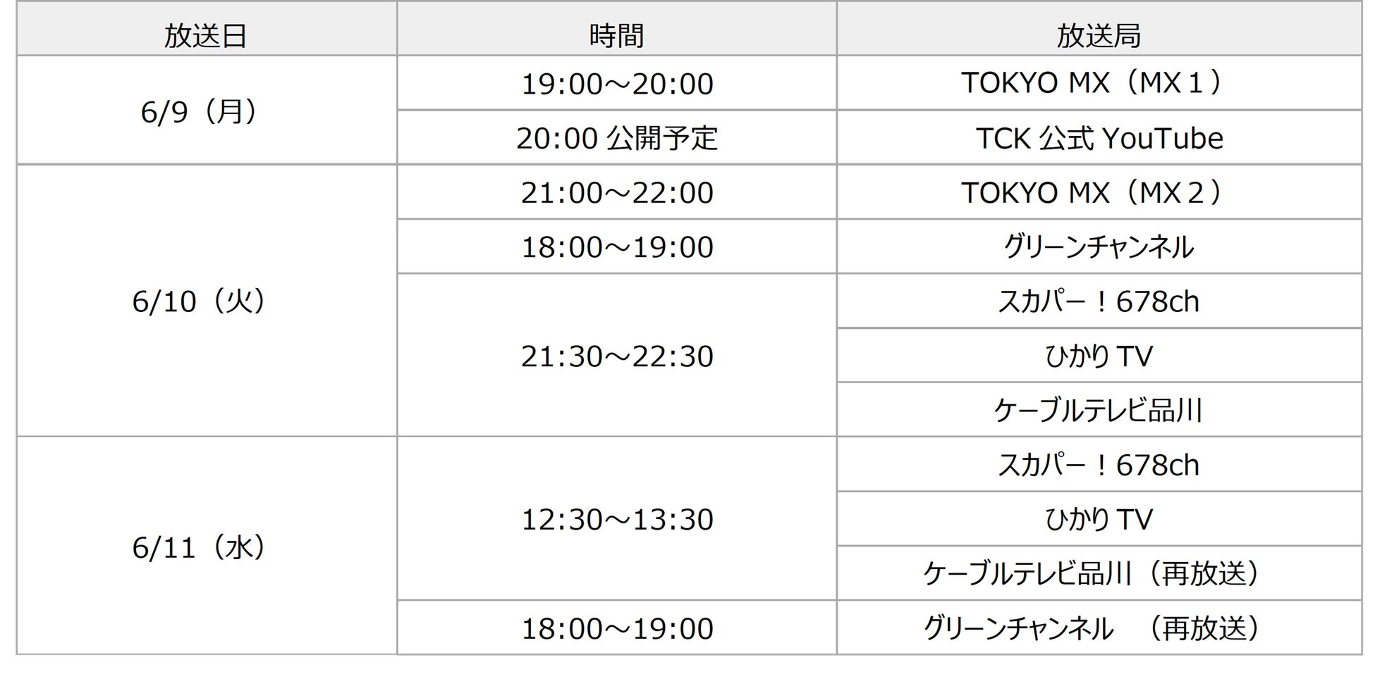 本番組は、6月9日(月)のTOKYO MX(MX1)を皮切りに東京ダービー当日(6/11)までスカパー!やグリーンチャンネルなどで放送されるほか、TCK公式YouTubeでも配信予定です。