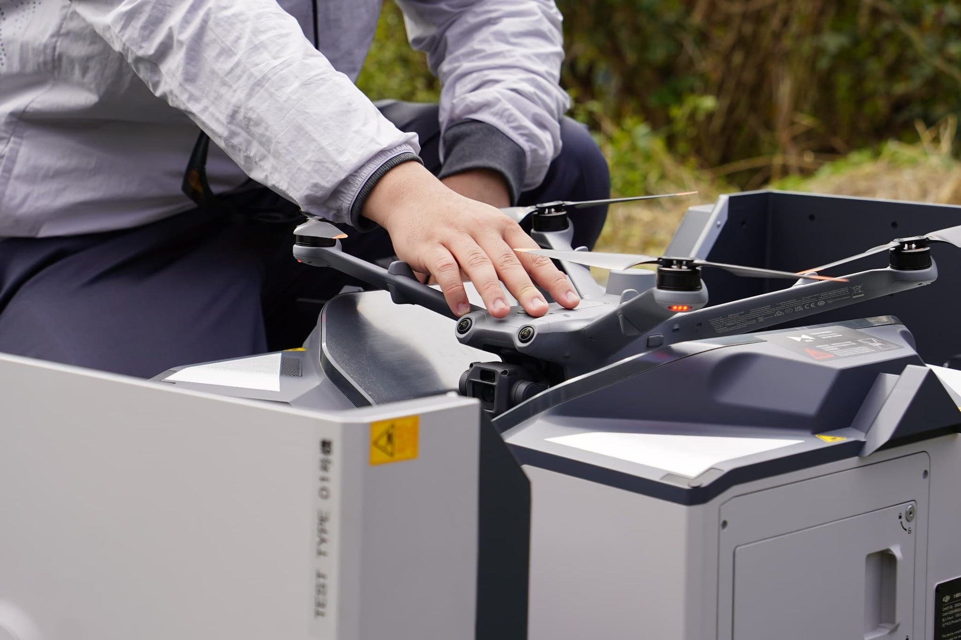 実証で使用した「DJI Dock2」はDJIが3/26より販売を開始した最新の自律型ドローンプラットフォームです。前機種の「DJI Dock」と比較してサイズは75%、重量は68%削減され、重量はわずか34kgと大人2名での持ち運びが容易かつ自動車の荷台に乗せて移動することも可能なサイズとなっています。