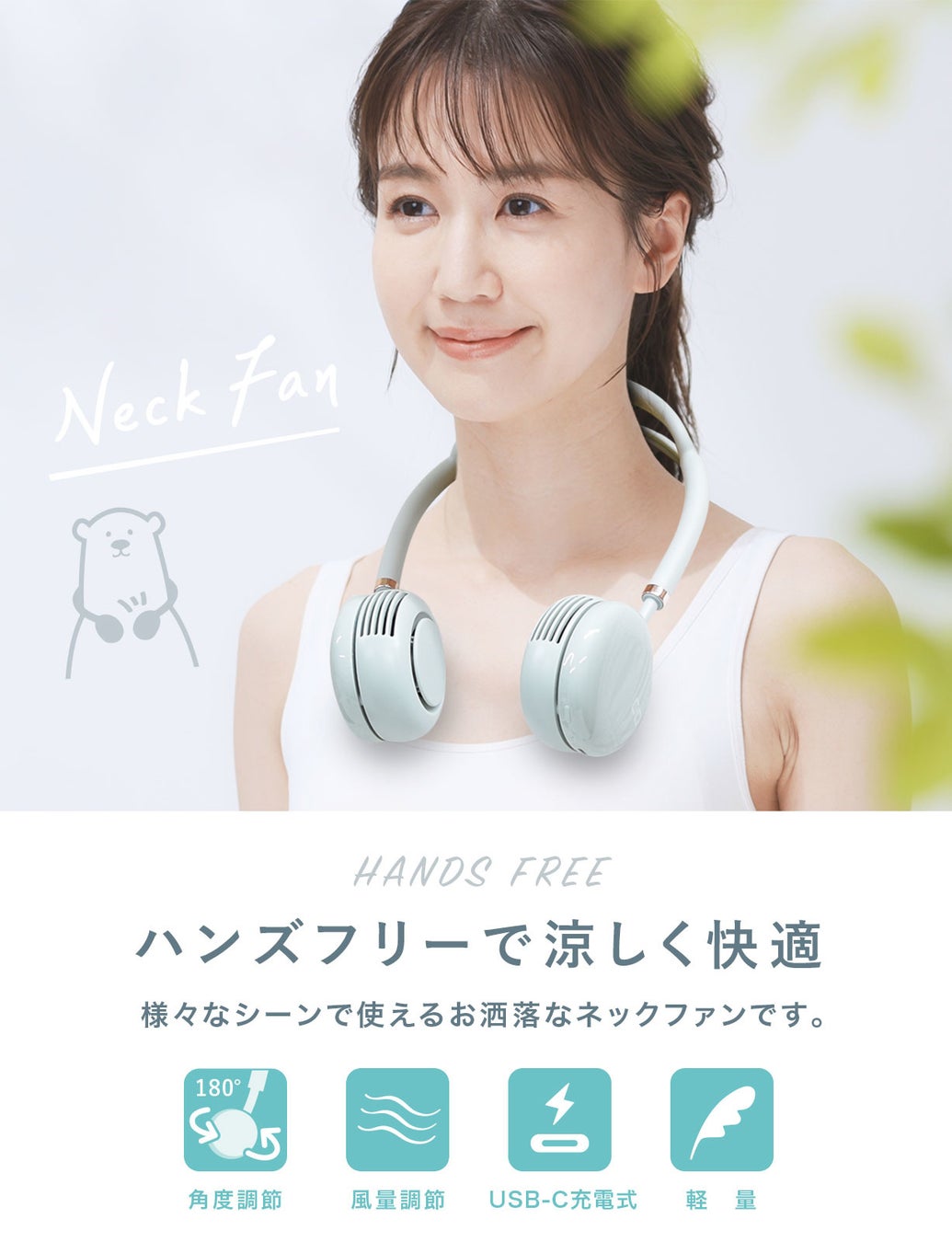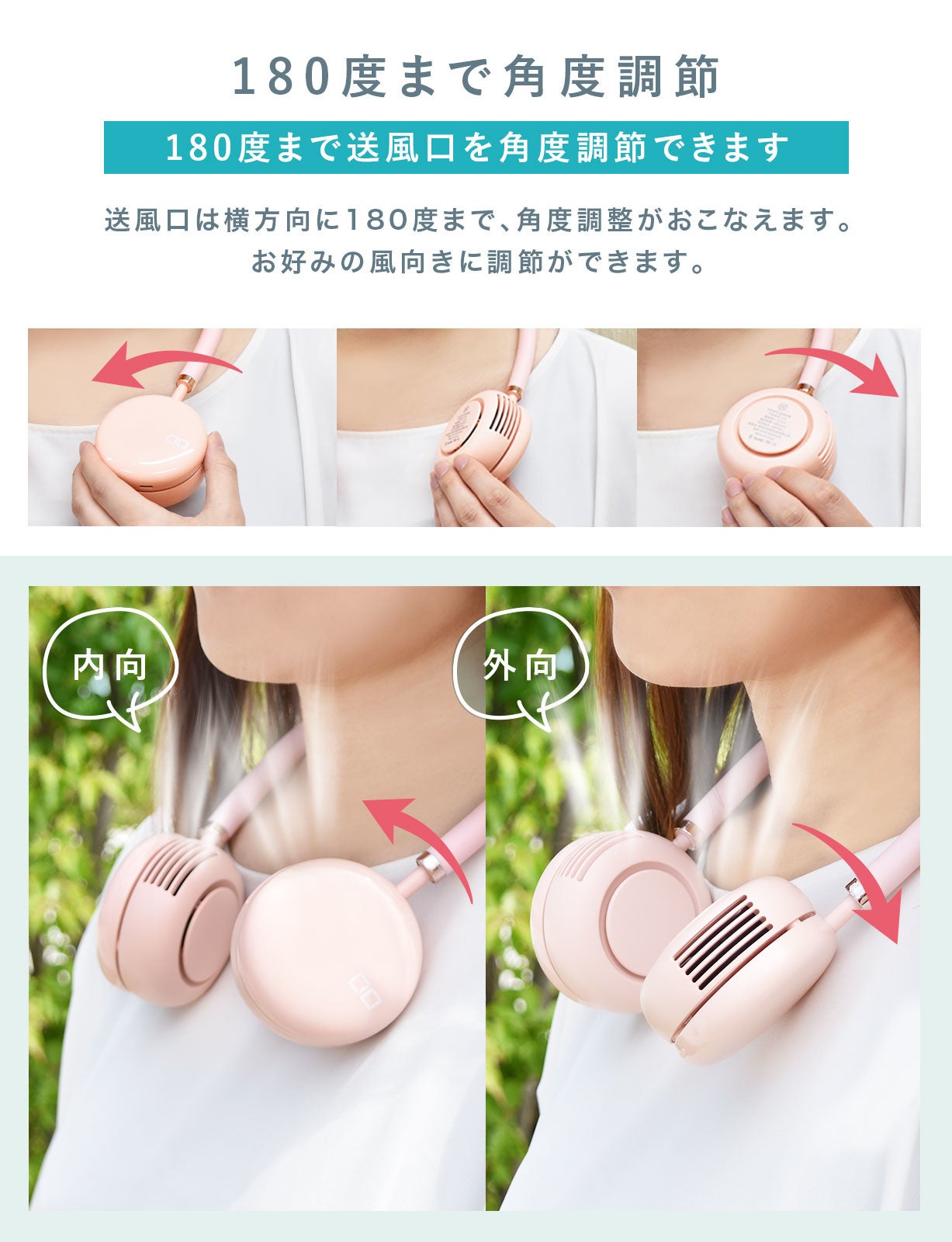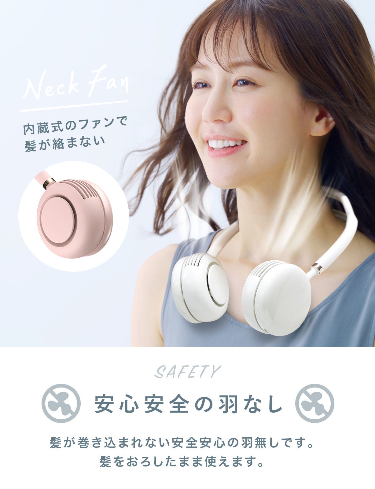 充電式で髪を巻き込まないファッショナブルな首掛けファン・首への負担が少ない約196gの軽量設計