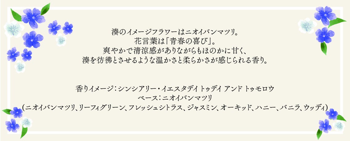 湊を彷彿とさせるような温かさと柔らかさが感じられる香り。