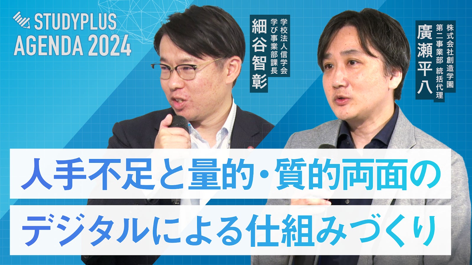 <出演者>株式会社創造学園 第二事業部 統括代理 廣瀬 平八氏、学校法人信学会 学校事業部 課長 細谷 智彰氏