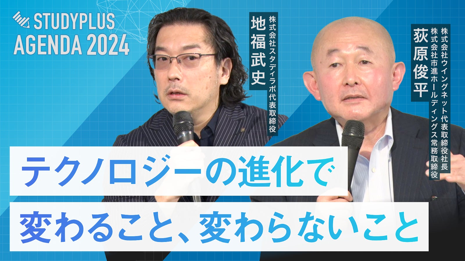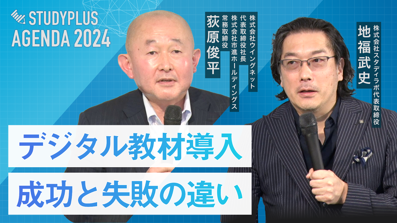 <出演者>株式会社ウイングネット 代表取締役社長 / 株式会社市進ホールディングス 常務取締役 荻原 俊平氏、株式会社スタディラボ 代表取締役 地福 武史氏