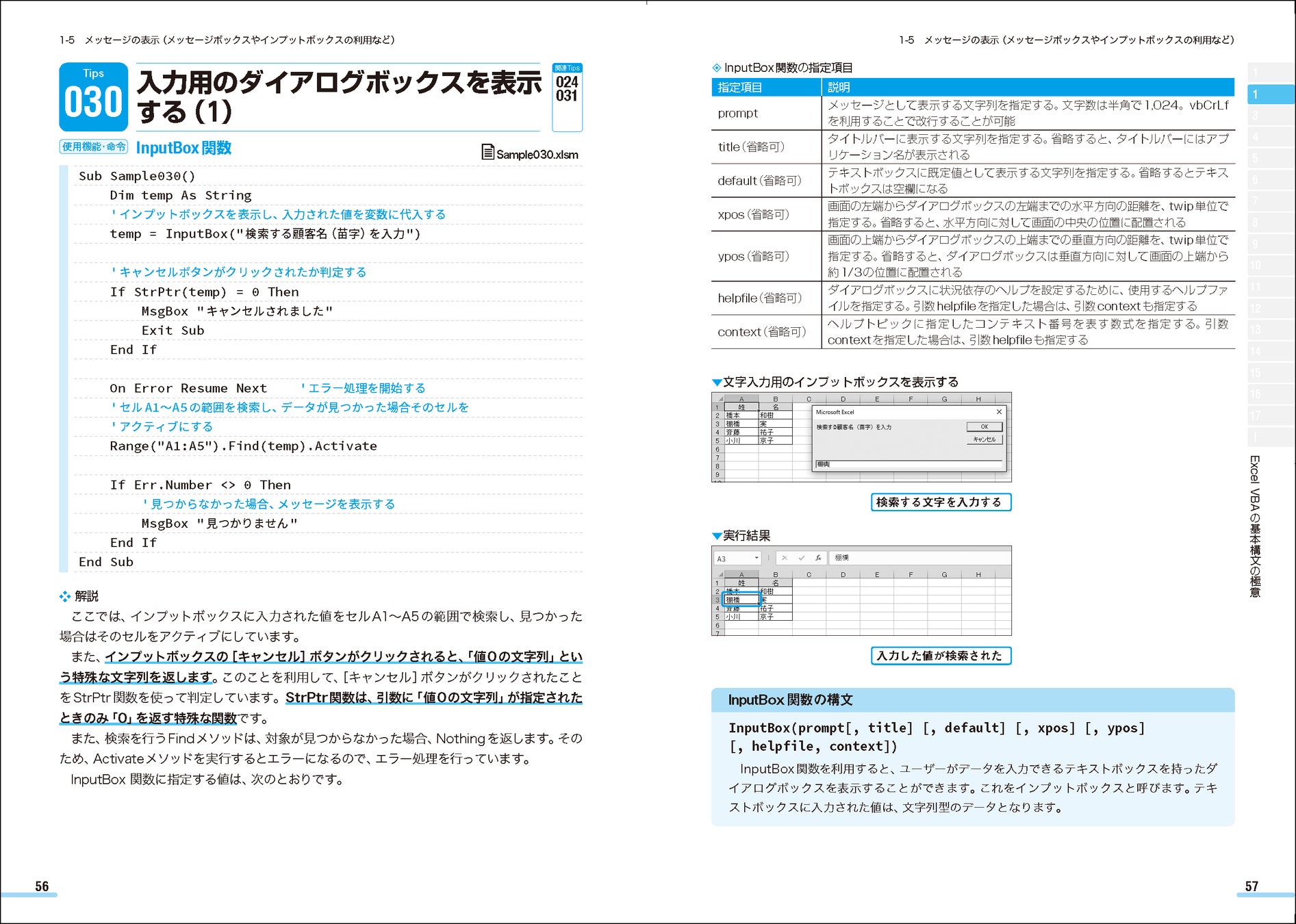 本書は、主にExcel VBAの初級~中級者を対象とし、目的別にテクニックを紹介しています。また、構文についての詳しい解説や、開発効率を上げるコツなども紹介。「手っ取り早く疑問を解決」するだけでなく、「じっくりExcel VBAを理解する」のにも有用です。