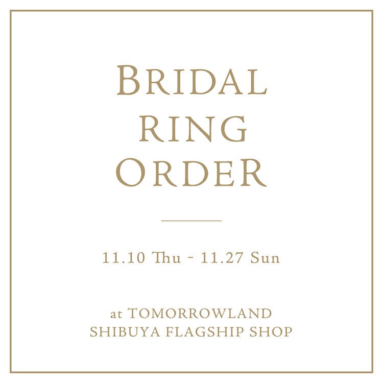 トゥモローランド 渋谷本店では、11月10日(木)から27日(日)の期間「BRIDAL RING ORDER」を開催いたします。