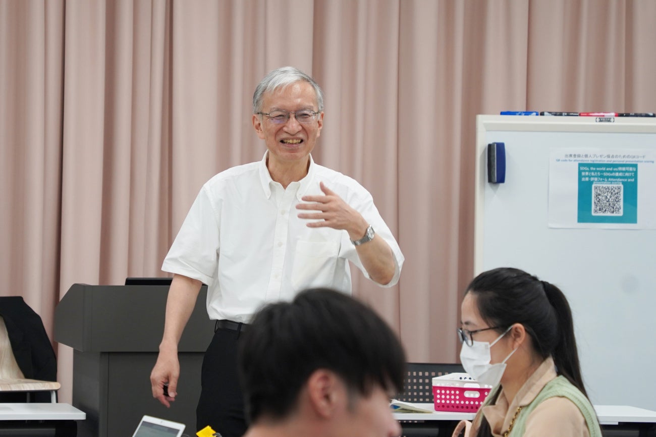この科目は、これまでの学修や学内外での活動を基に、改めてSDGsの達成に向けて考える機会であり、有信睦弘学長や保井俊之学部長による講義のほか、国際機関、証券会社、研究機関など様々な業界からゲストスピーカーをお招きしました。