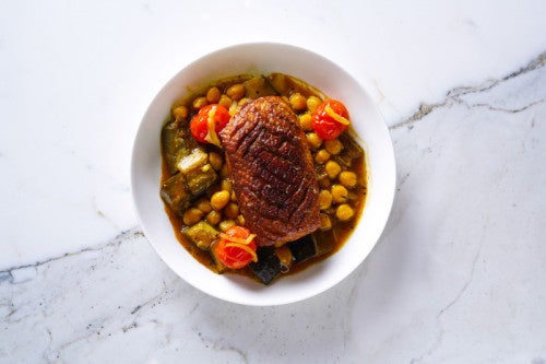メインコースの一例として、ローストダックに蒸したナス、ラズ・エル・ハヌートでスパイスを効かせたクスクスジュとヒヨコマメの煮込み、チェリートマトが添えられ、この一品にモエ・エ・シャンドン ロゼ・アンペリアルがペアリングされます。クスクスの風味の交響曲が赤ワインのストラクチャーとダンスし、そのスパイシーなノートに惹きつけられるでしょう。チェリートマトの繊細な酸味が料理とロゼ・アンペリアルをシームレスに結びつけます。メインコースのもう一例に、セージチキンジュ、マッシュポテト、フェンネルの煮込み、アーモンドを添えたジューシーなローストターキーがあります。この一品はモエ・エ・シャンドン グランヴィンテージ2016とペアリングされ、フェンネルの繊細な植物的なノートが華やかな香りを引き立て、セージチキンジュの旨味により、調和のとれたペアリングが実現しました。シーフードをお好みのお客様には、モエ・エ・シャンドン ブリュット・アンペリアルとペアリングする、シアードチリ産シーバスのアーティチョークピューレ、レモングラスソース、バターシュガースナップエンドウ添えはいかがでしょうか。アーティチョークピューレが滑らかな食感と微妙な味わいをもたらし、エレガントなモエ・エ・シャンドン ブリュット・アンペリアルと調和します。シュガースナップエンドウがパリッとした要素を加え、シャンパンの発砲の感触を引き立てます。最後に、レモングラスソースが爽やかさを提供し、シャンパンの明るさを増幅させます。ヴィーガンオプションでは、ココナッツで煮込んだレンズ豆に、バスマティライス、スパイスを効かせたカリフラワーとグリーンピース、ナンが添えられ、モエ・エ・シャンドン ロゼ・アンペリアルとペアリングされます。コーラルレンズ豆の素晴らしい食感が、ロゼ・アンペリアルのエレガントな泡立ちと調和し、カレーの風味がフルーティーな香りを柔らかいスパイシーさで引き立て、コリアンダーが繊細な対比を生み出します。