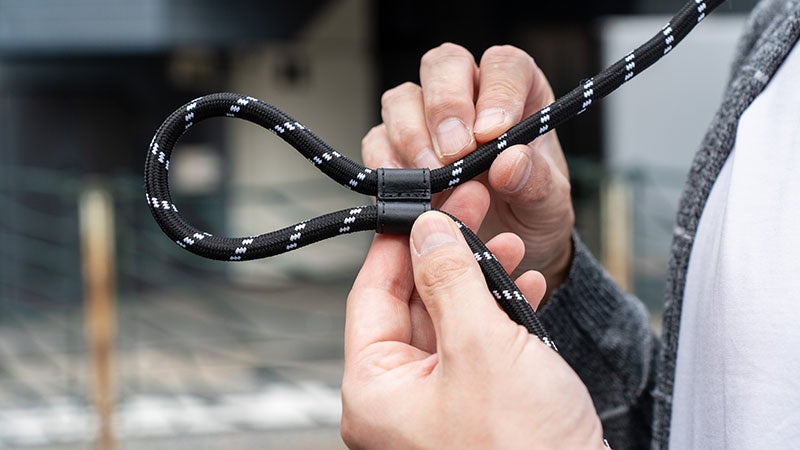 「大容量&多機能スマホポーチ」は長さ調節のできるストッパー付き。斜め掛けも首下げも可能です。太く堅牢なロープは肩への負担を軽減します。