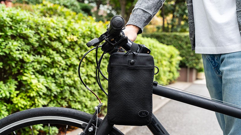 例えば写真のようにベルトに通して使用したり、自転車のハンドルバーに取り付けたりするなど、工夫次第でどんなシーンにも活躍します。