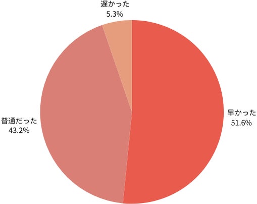アイフルの審査のスピードが「早かった」と回答した人が51.6%で最も多く、反対に「遅かった」と答えた人は5.3%とわずかだった。