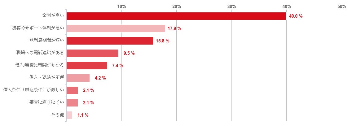多くのユーザーはアイフルがWeb完結で申し込める点や即日融資が可能な点にメリットを感じており、アイフルの金利条件が良いからと答えた人は2.1%のみだった。