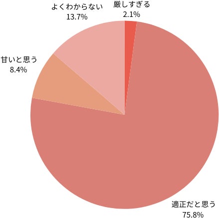 アイフルの審査基準については、「適正だと思う」人が75.8%で最も多く、「甘いと思う」人も8.4%いた。