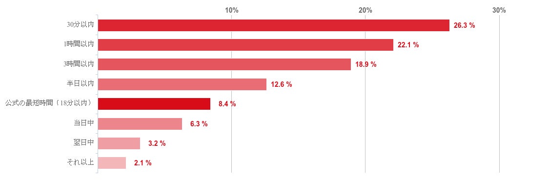アイフルの審査結果が通知されるまでの時間は、「30分以内」が一番多く、次いで「1時間以内」「3時間以内」という順となった。