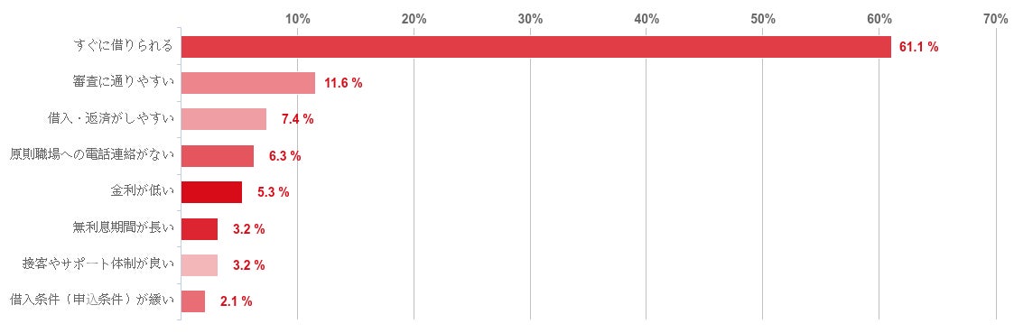アイフルのメリットには、「すぐに借りられる」ことを挙げる人が最も多く6割を超えた。