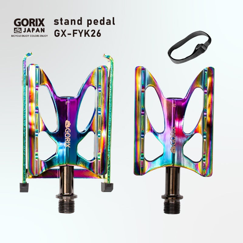 【新商品】【ペダルスタンド内蔵!!】自転車パーツブランド「GORIX」から、オイルスリックカラーのフラットペダル (GX-FYK26)が新発売!!