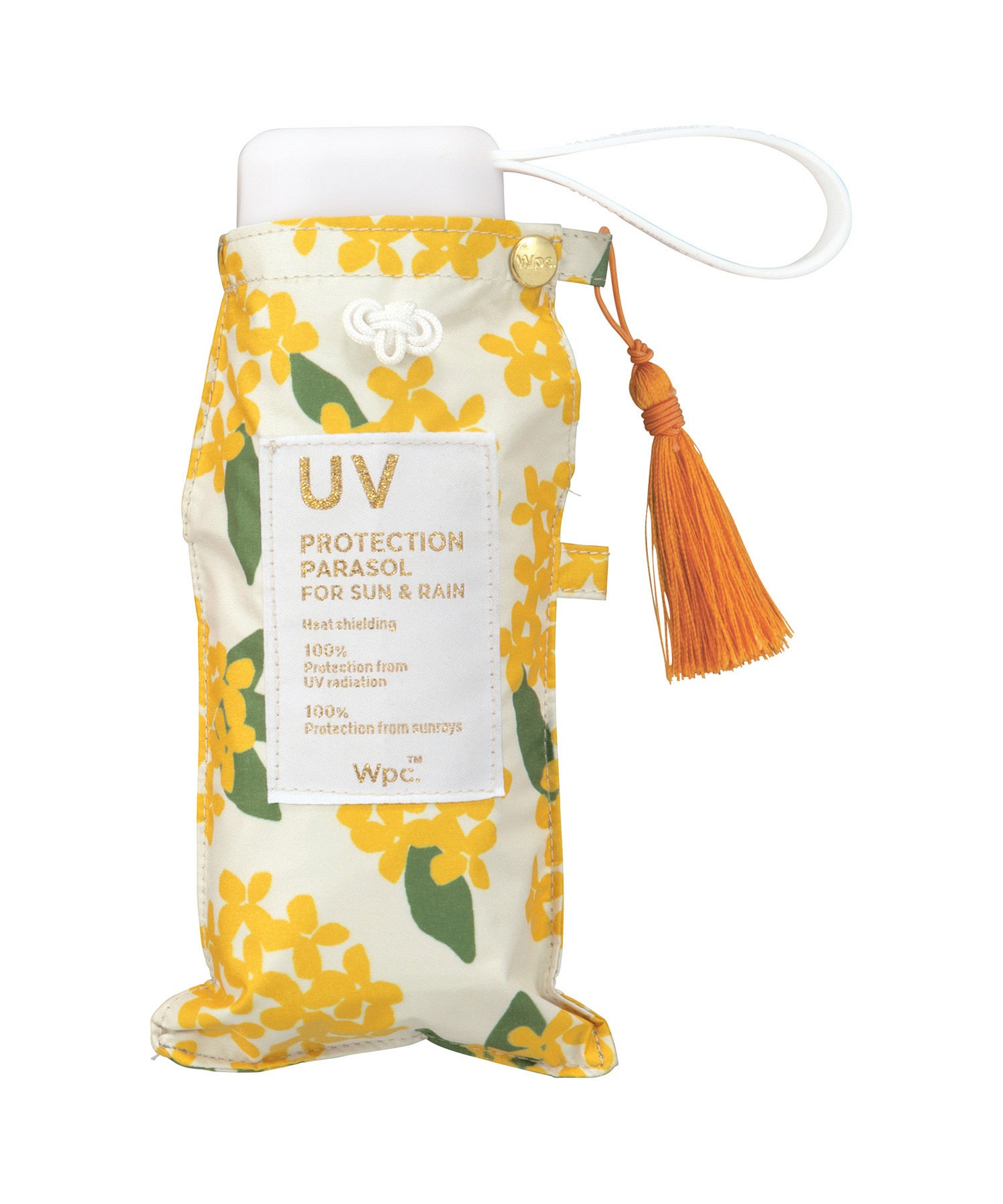 Wpc.は大阪発のブランド。この「遮光トラベルパラソルミニ」も、そのエッセンスを感じられる一品!収納袋には長めのグログランテープをあしらい、クラッチ風に持つだけでこなれた印象に。スナップボタンが付いており、鞄の持ち手などに簡単に取り付けられる実用性も備えています。