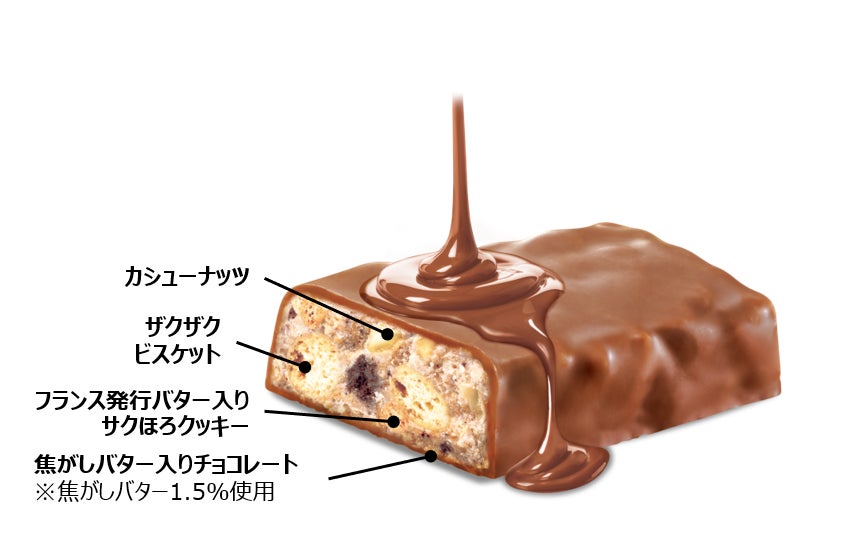 ブラックサンダー至福のバターは発酵バター入りサクほろバタークッキーとザクザクビスケットに焦がしバター香るチョコレートを使用。クセになるザクほろ食感とバターが生み出す「濃いtheリッチ」な味わいをお楽しみください。