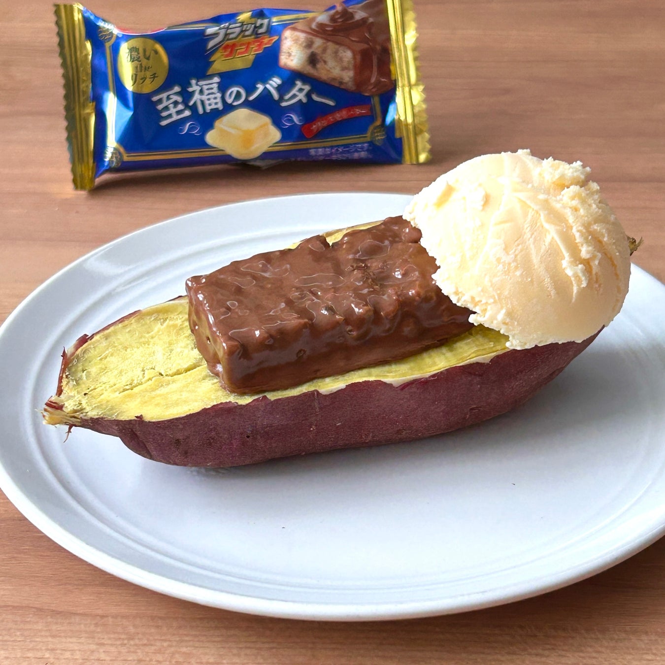 ブラックサンダー至福のバターは実は芋との相性がぴったり。前回好評だったじゃがバターの組み合わせから、秋バージョンとして焼き芋レシピが登場。カロリー重めの至福体験をどうぞ。