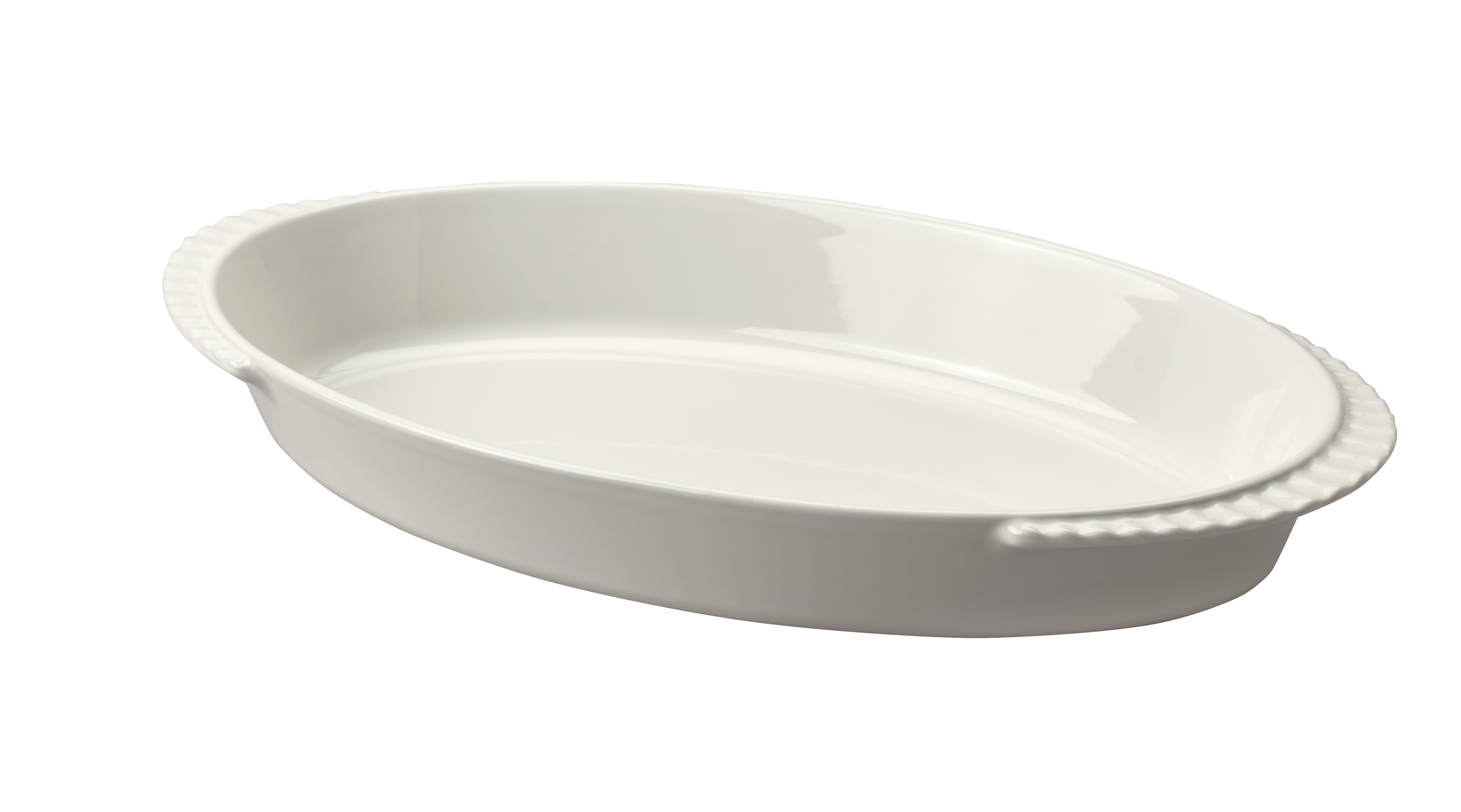 このパイ皿なら、高さのあるパイやタルト、フィリングをたっぷり詰めたスイーツなどがつくれ、お皿のままテーブルに出すことができます。丸形の縁は波型になっていて、しっかりとしたおいしいクラストが焼けます。ほかの食器と合わせやすい、ニュートラルカラーの流行に左右されないデザインです。もちろんパイ以外の料理にも最適です。