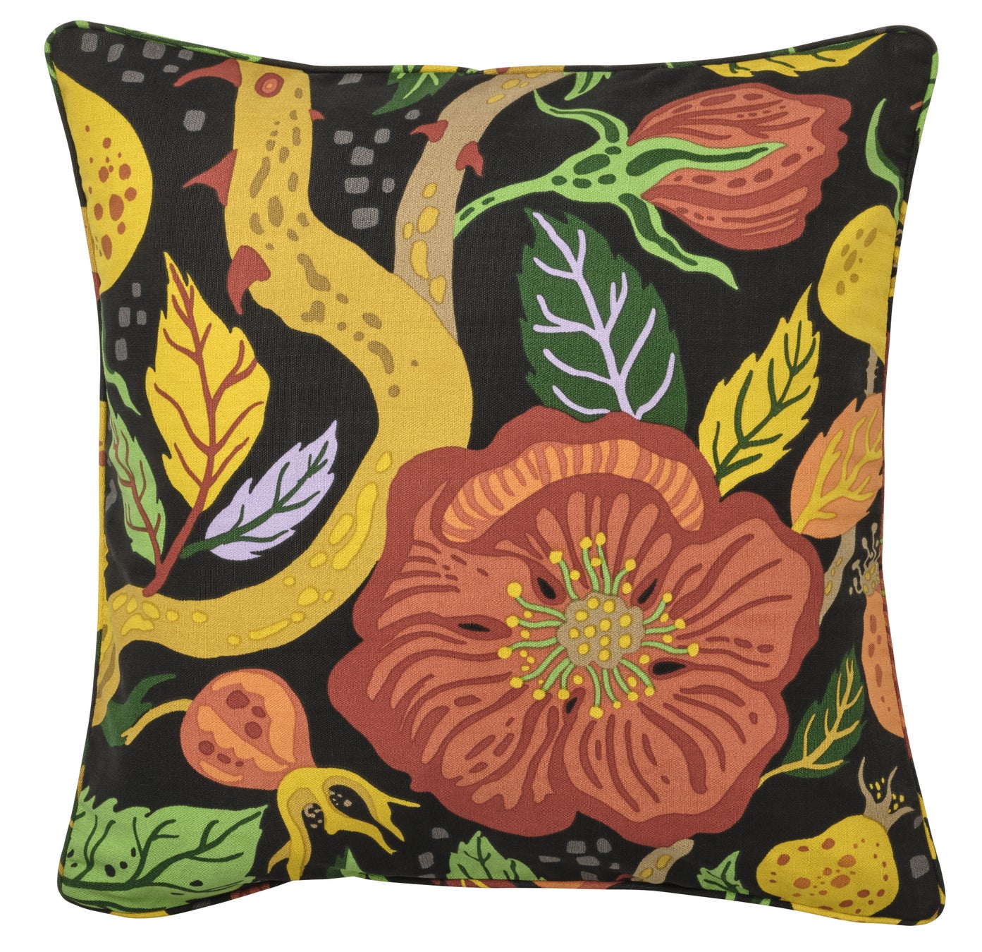 自然の鮮やかな秋色をインスピレーションにした、カラフルなローズヒップやつぼみ、バラの花をあしらったクッションカバーです。室内に温かく心地いい秋の雰囲気を演出します。赤やオレンジ色のクッションカバーやブランケットと相性抜群です。