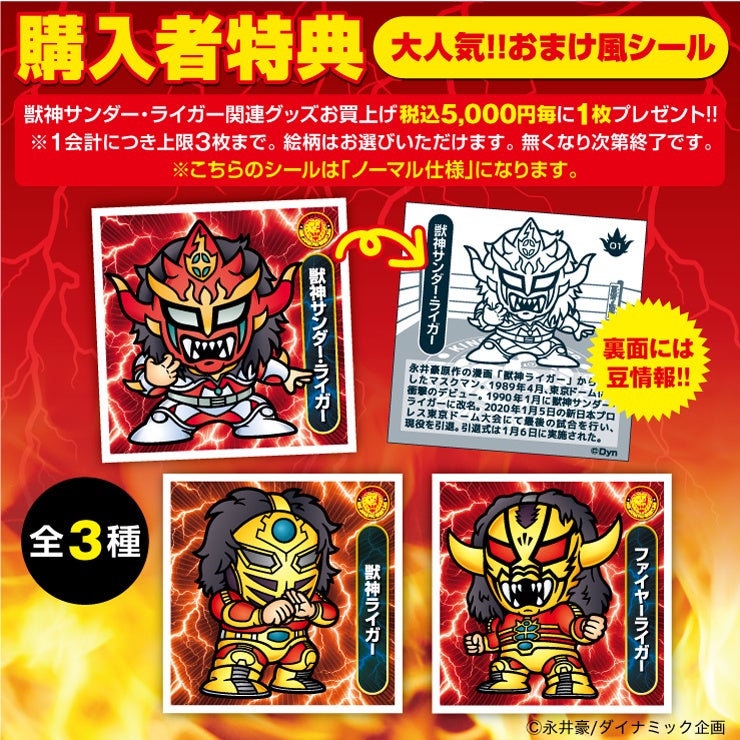 「獣神サンダー・ライガー展」関連商品をご購入税込5,000円毎に1枚、オリジナルおまけ風シール(ノーマル)をプレゼント。