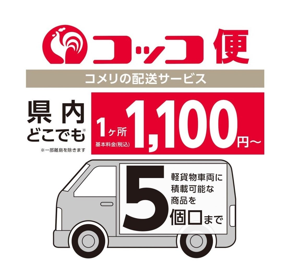 店舗で購入した商品を最短で当日にご自宅へお届け!コメリの配送サービス”コッコ便”のサービス対応エリアに宮城県・福島県が追加
