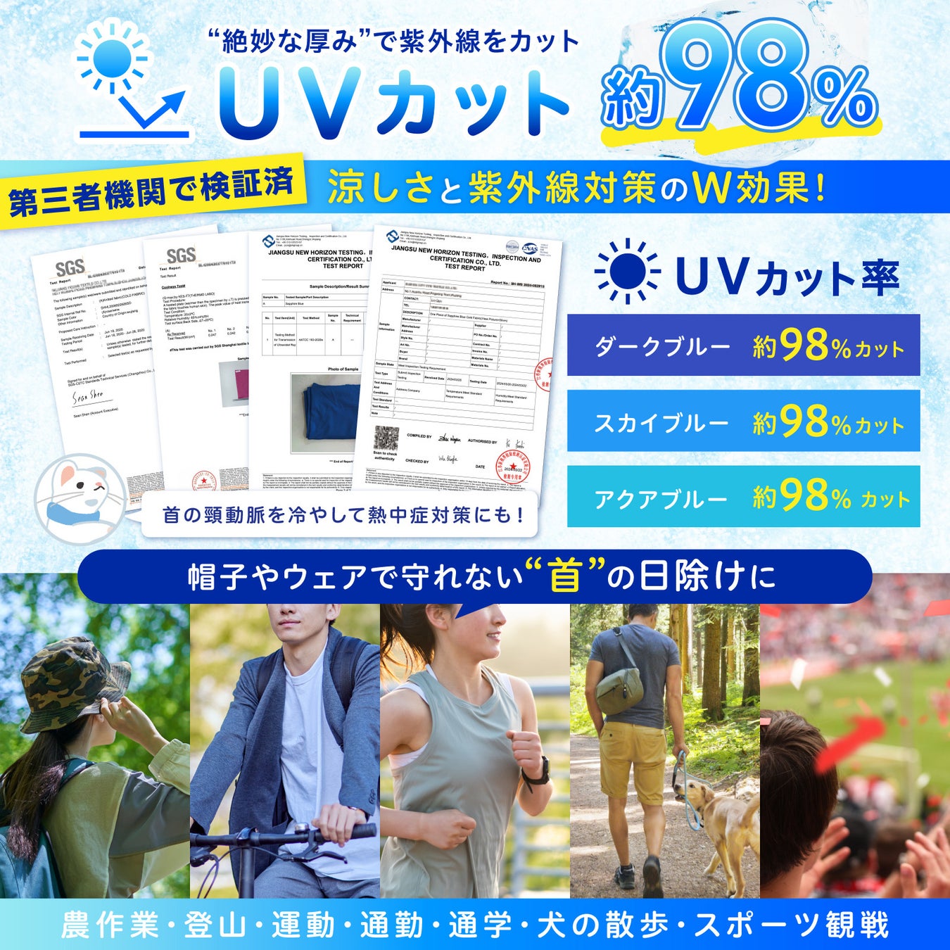 98%以上のUVカット効果で、首や顔の日焼けを防ぎます。