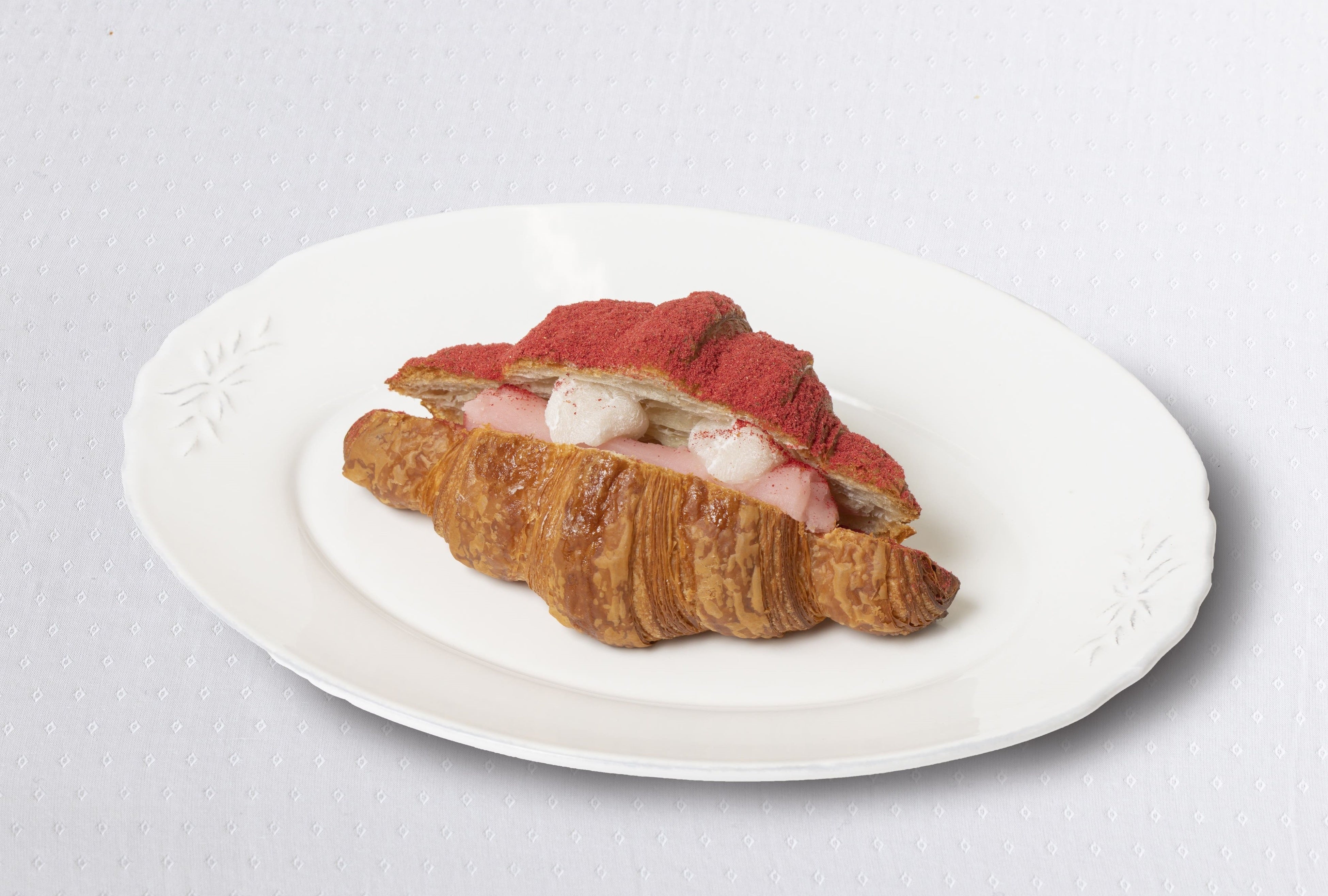 サックサクのクロワッサンに甘酸っぱいとちおとめあんと求肥を挟みました。
