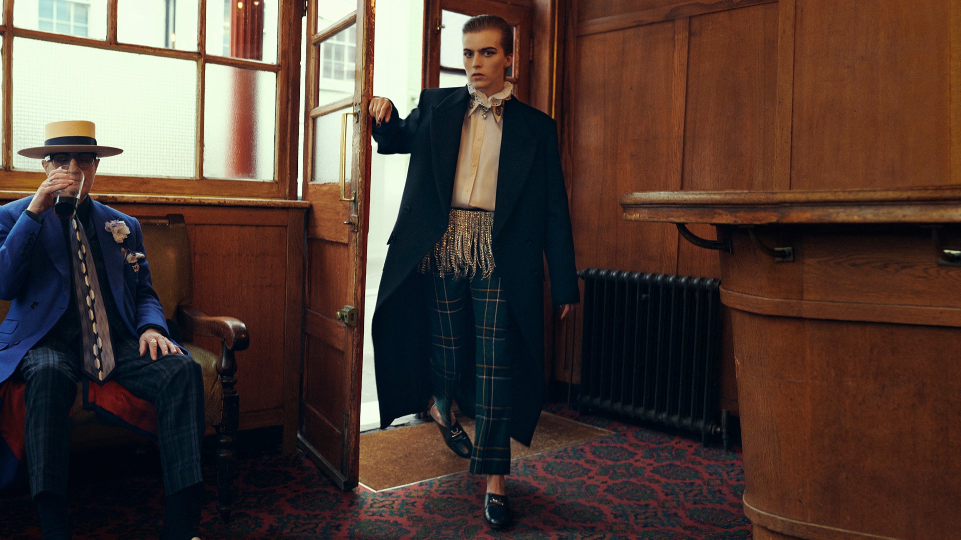 カウンターカルチャーと伝統が融合し、1950年代の象徴的な社交場として知られるザ・コーチ&ホーセズでテオ・シオンが撮影。レンズが捉えるのは、現代のソーホーに流れる精神。シグネチャーのテーラードスタイルで知られる地元の有名人、ソーホー・ジョージと、ジャズ&ブルースのレジデントシンガーであるフローレンス・ジョエル。変わりゆくロンドンのなかに息づく、揺るぎないコミュニティの絆を映し出す。