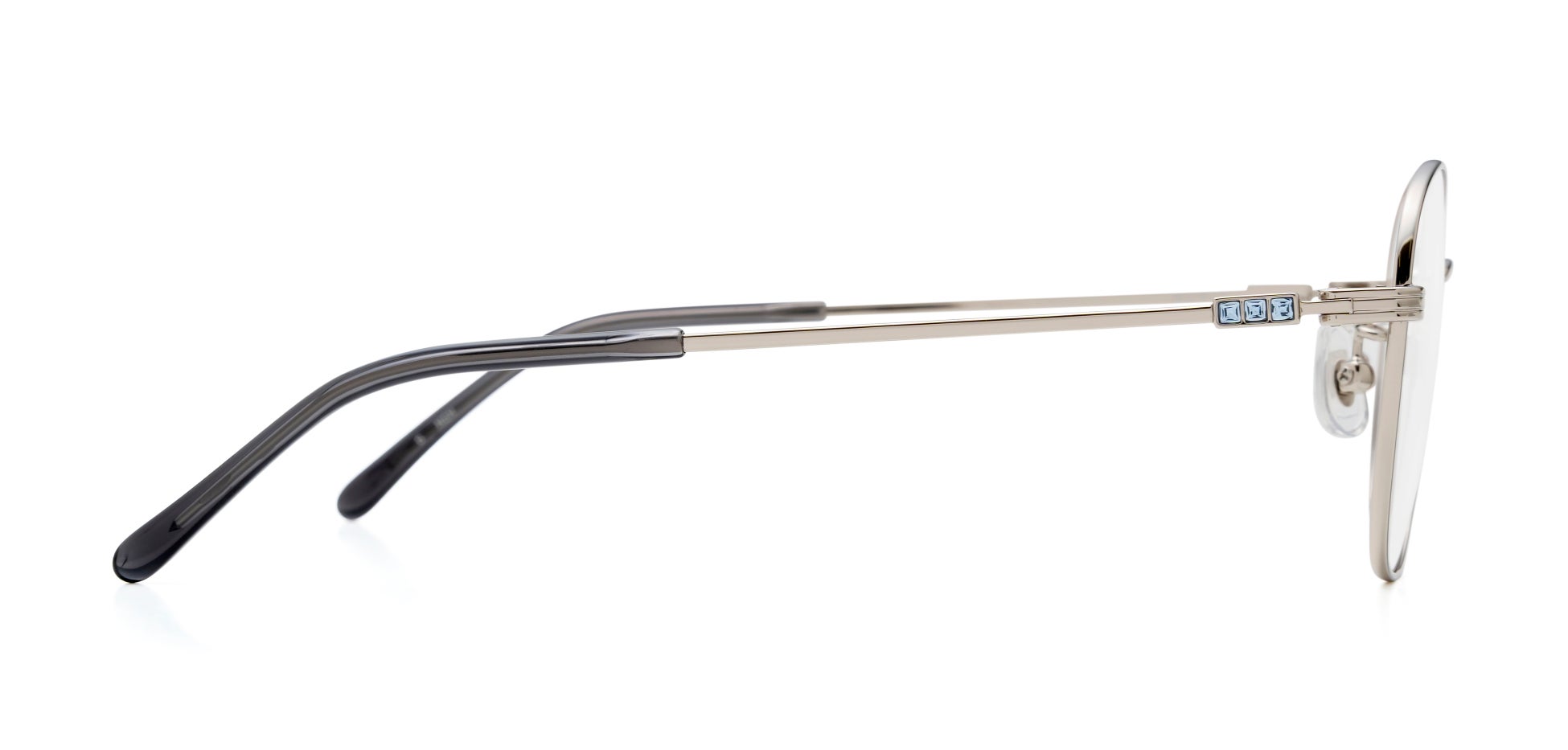 少し大きめのフロントで、トレンド感のあるウェリントンメタルフレーム。テンプルには小粒のラインストーンを配置し、さりげなく横顔を彩ることで、大人っぽい雰囲気を演出しています。