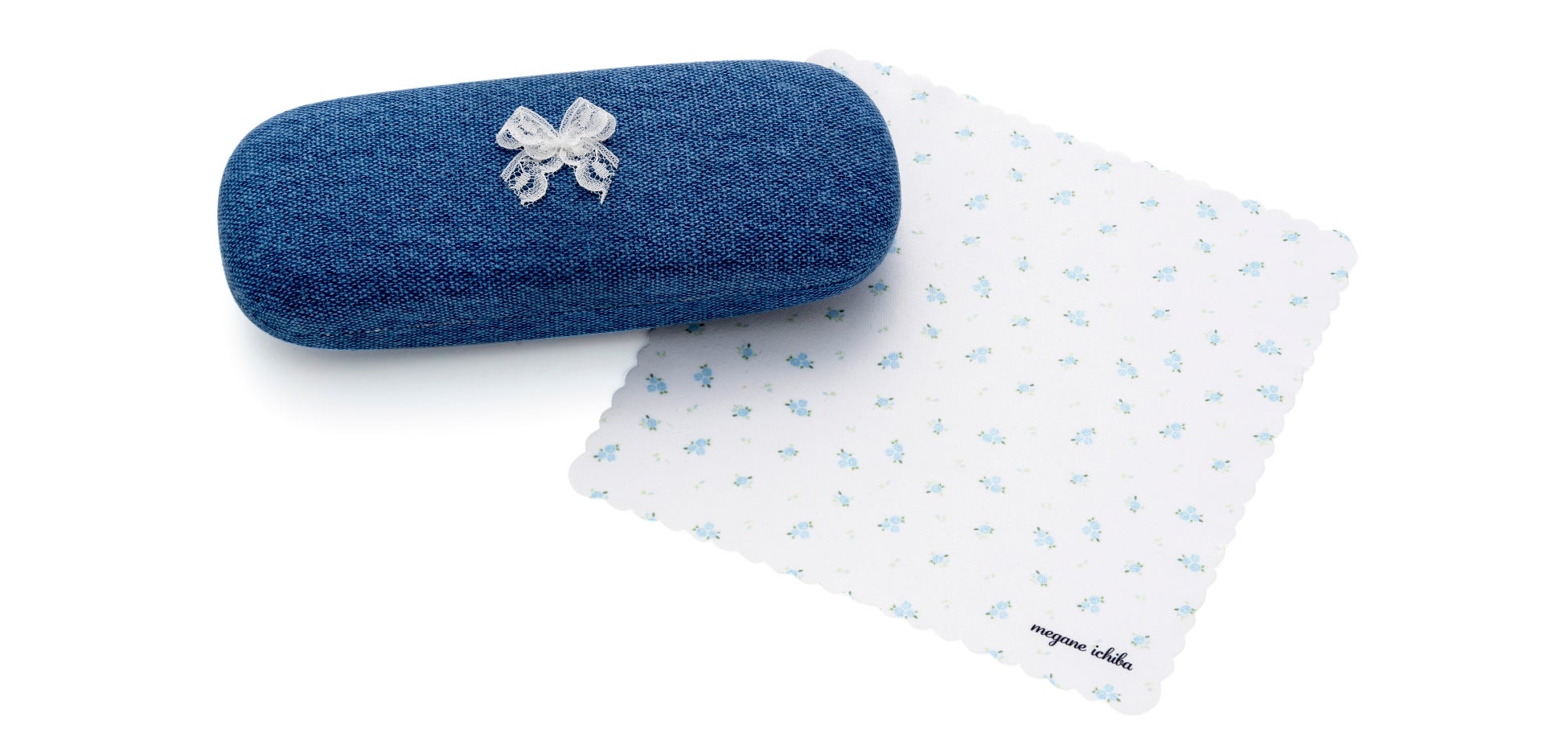 また、専用のメガネケースとメガネ拭きもオリジナルで制作し、レースのリボンをあしらったデニム生地のケースと、春らしい花柄をプリントしたメガネ拭きを組み合わせ、持ち歩きたくなるデザインに仕上げています。