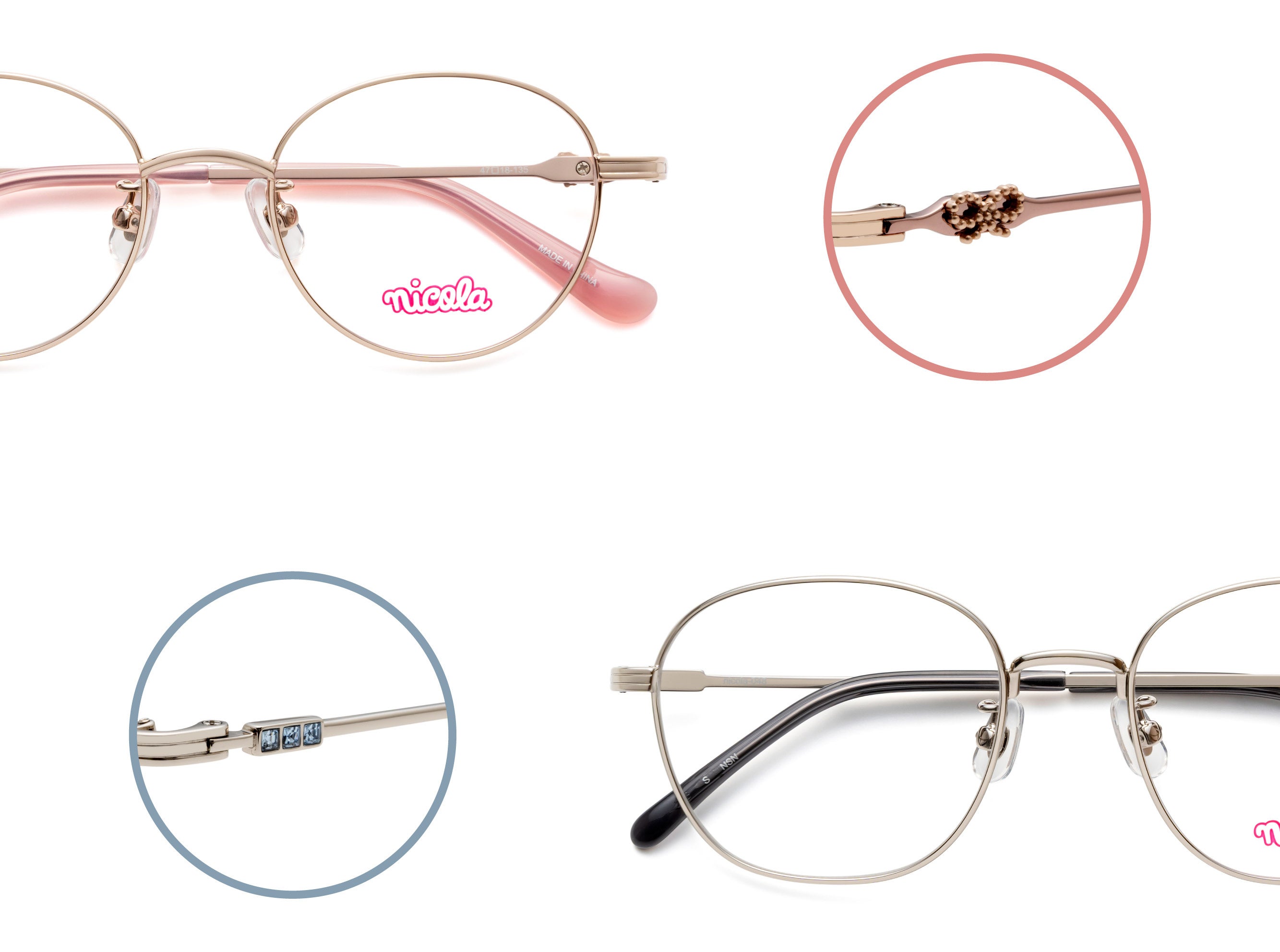 今年もニコ㋲(ニコラモデル)とともに、中高生が可愛いと感じるデザインを厳選しました。「制服でも私服でも可愛いスクールメガネ」をコンセプトに、韓国トレンドを彷彿とさせるモチーフやカラーをサイドに取り入れ、日常でのとトレンド感を両立しています。