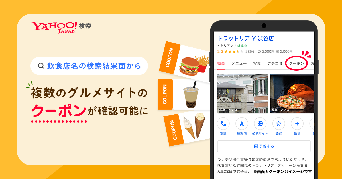 ・Yahoo! JAPAN検索ガイド「クーポン情報が充実! 飲食店探しはヤフー検索で」