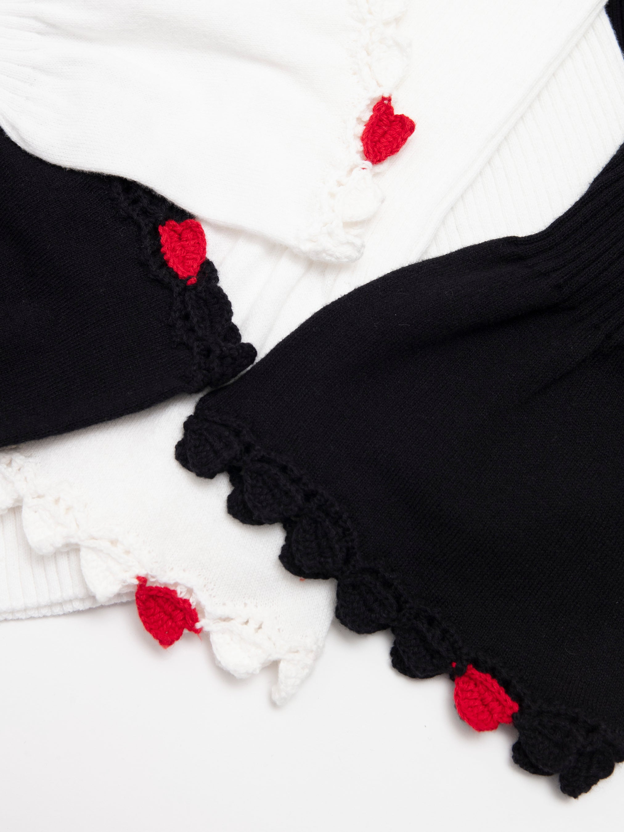 Heart Crochet Rib Pullover / White, Black ¥28,600