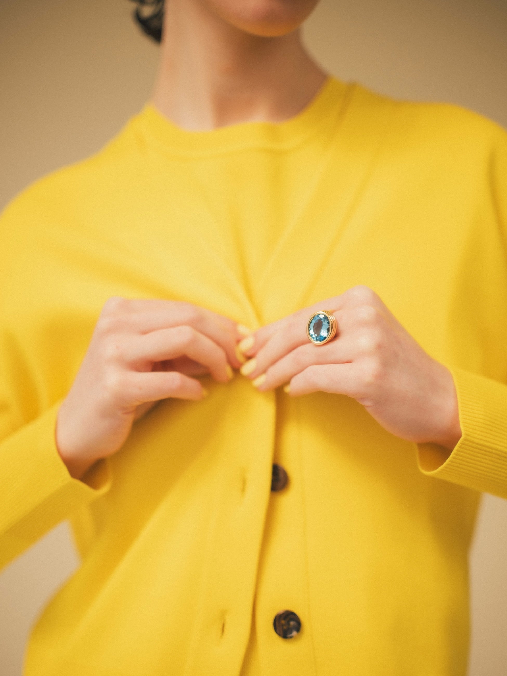 Silk Cotton Cardigan / Yellow, Blue ¥42,900