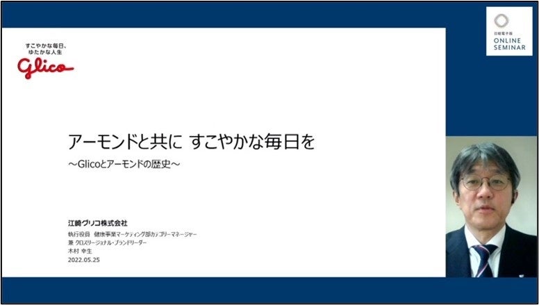 <イベント実施レポート>日経電子版オンラインセミナー『健康と美容の新潮流~世界が注目するナッツの王様「アーモンド」から考える~』に江崎グリコ株式会社 執行役員・木村幸生が登壇しました