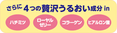 4つのうるおい成分(ハチミツ・ローヤルゼリー・コラーゲン・ヒアルロン酸)を贅沢に配合し、 洗顔後のお肌もしっとり。乾燥を防ぎます。