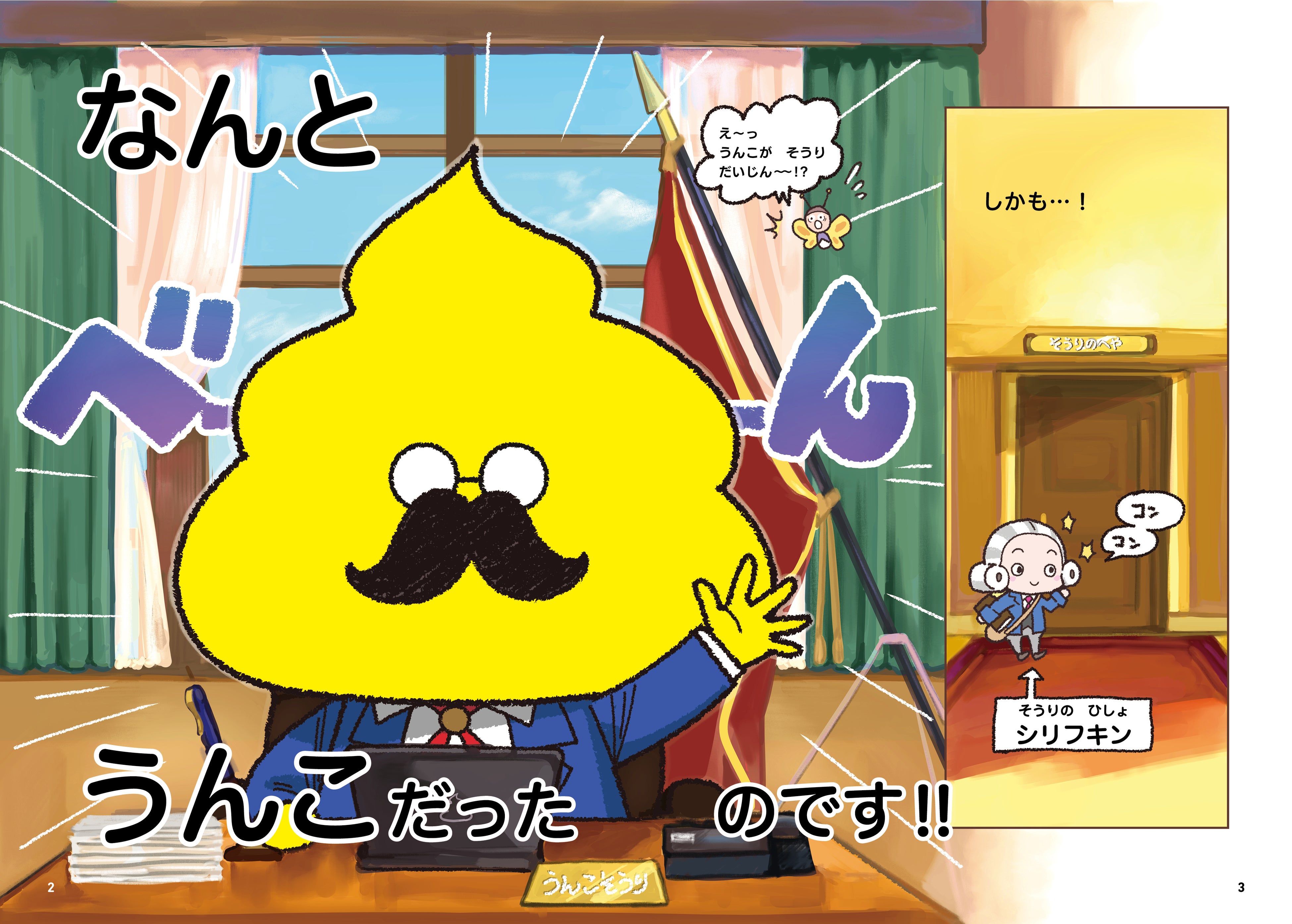 物語の舞台はふんばりランド。なんとこの国の総理大臣は、うんこだったのです。