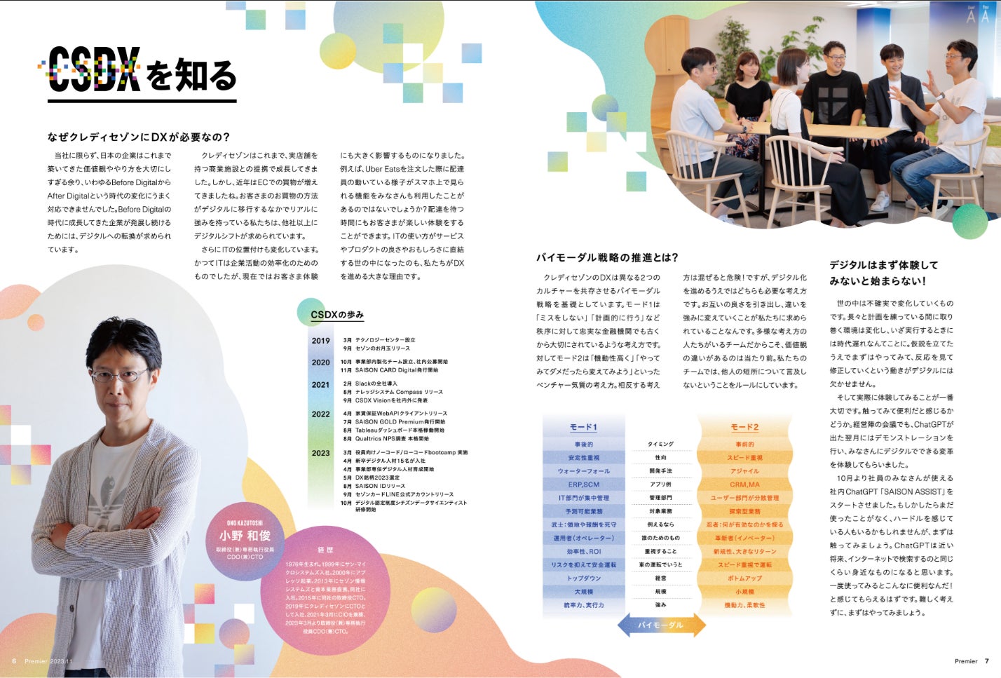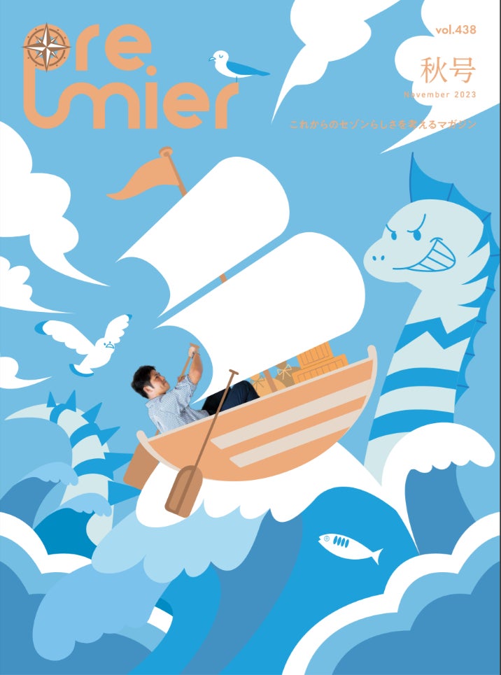 ・ 社員を紹介するセゾニストというコーナーでは、見開きトップでしっかりと紹介されているだけでなく、表紙にも登場している点は特別感があります。本人をイメージした表紙がデザインを施している点も、斬新なアイデアです。