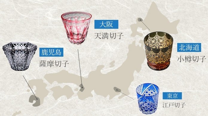 江戸切子だけでなく、薩摩(鹿児島)・小樽(北海道)・天満(大阪)の切子が一堂に集結。各地の個性を一度に比較し、「自分だけの一脚」に出会える、切子ファン必見のコーナーです。