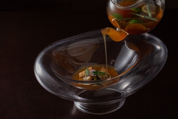 『TERRASSE』では、「表参道のルーフトップテラスで、旬のフレンチと共に過ごす特別な時間を。」をコンセプトとし、メニューは2ヶ月ごとに変更されるこだわりの1コースのみ。旬の食材の魅力を、奇をてらわずシンプルに惹き出すことで、季節を感じていただける料理をご提供いたします。店内は、テーブル席、カウンター席に加え、個室、屋外テラスをご用意し、結婚記念日や特別な日、少し贅沢な時間を味わいたい時など、ご利用シーンに合わせて非日常の空間をお楽しみいただけます。
