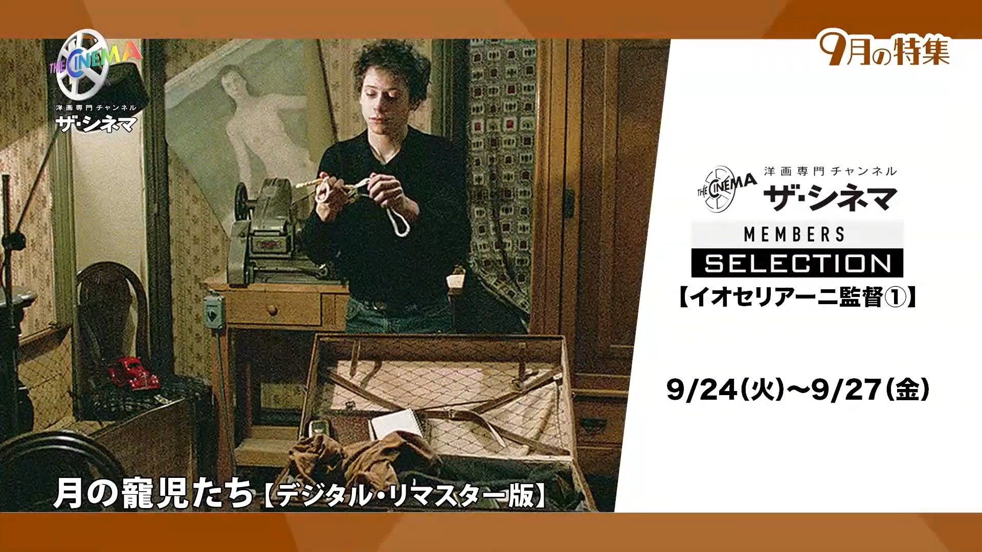 9月は、映像と音だけでコミカルに愛を紡いでいく中編デビュー作『四月』、ワイン工場の技術者と職人達を描き、カンヌ国際映画祭でイオセリアーニの名を世界に知らしめた長編第1作『落葉』、生き急ぐ男の日常を綴った初期の傑作『歌うつぐみがおりました』、美しい田園風景の中で映し出される人々の営みを瑞々しく綴る映像叙事詩『田園詩』、パリを舞台に描く奇想天外な群像劇『月の寵児たち』の