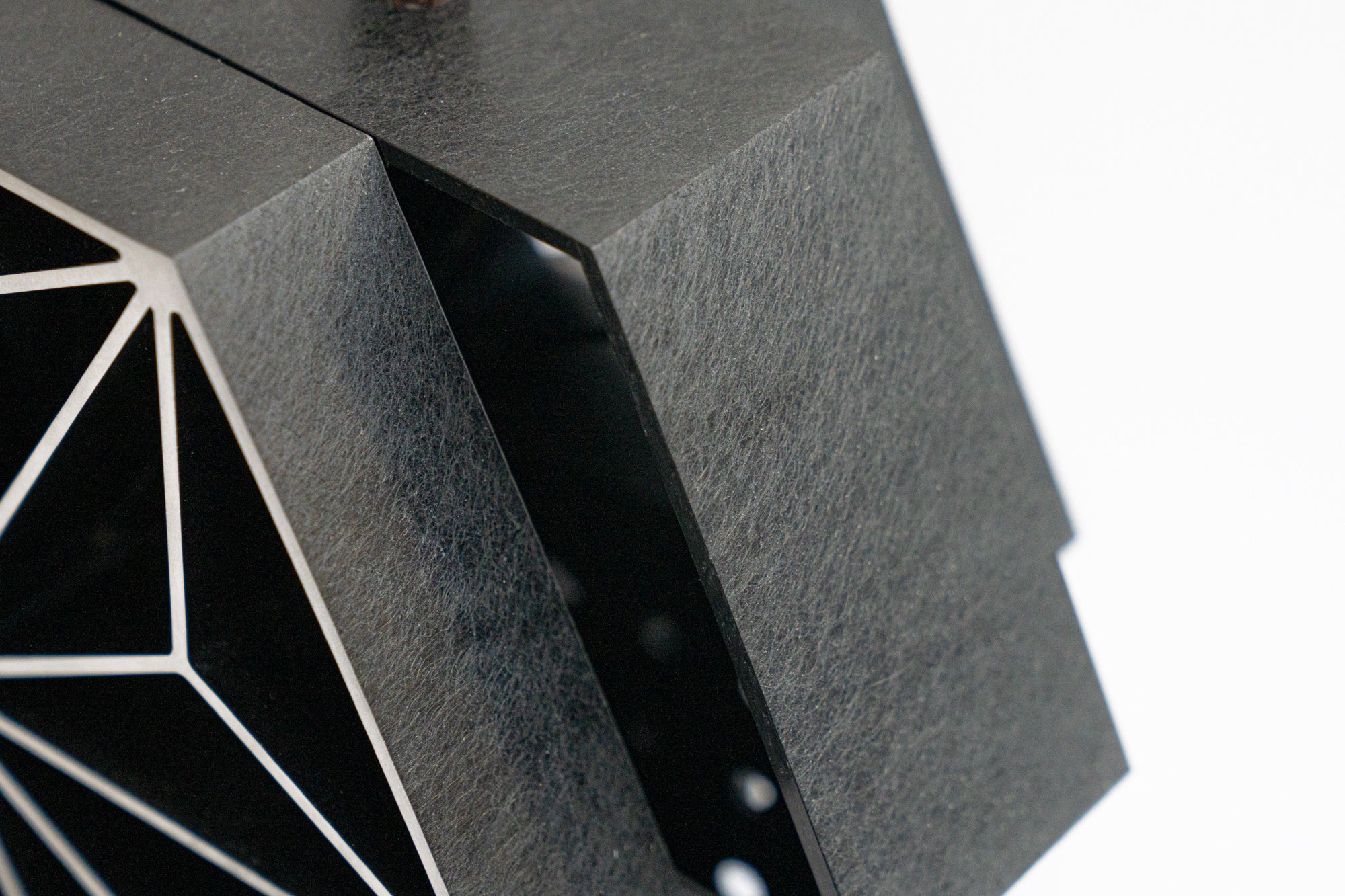 組み合わさった直線造形の美しいデザインは、窓サッシ等の製造に用いられる「アルミ押出し成形」の応用と溶接、そしてそれを丁寧に磨きあげることで継ぎ目のない美しい表面に仕上げています。