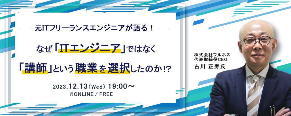 本セミナーでは、現役IT講師として年間を通じて100日以上の登壇をする古川氏にIT講師に魅力についてお話いただきます。