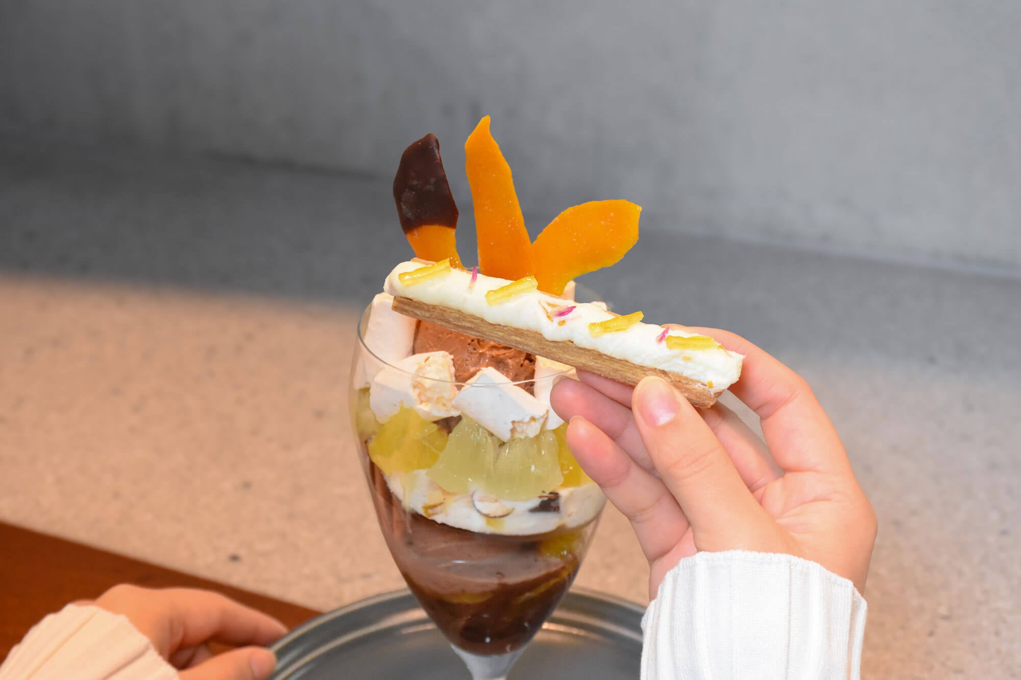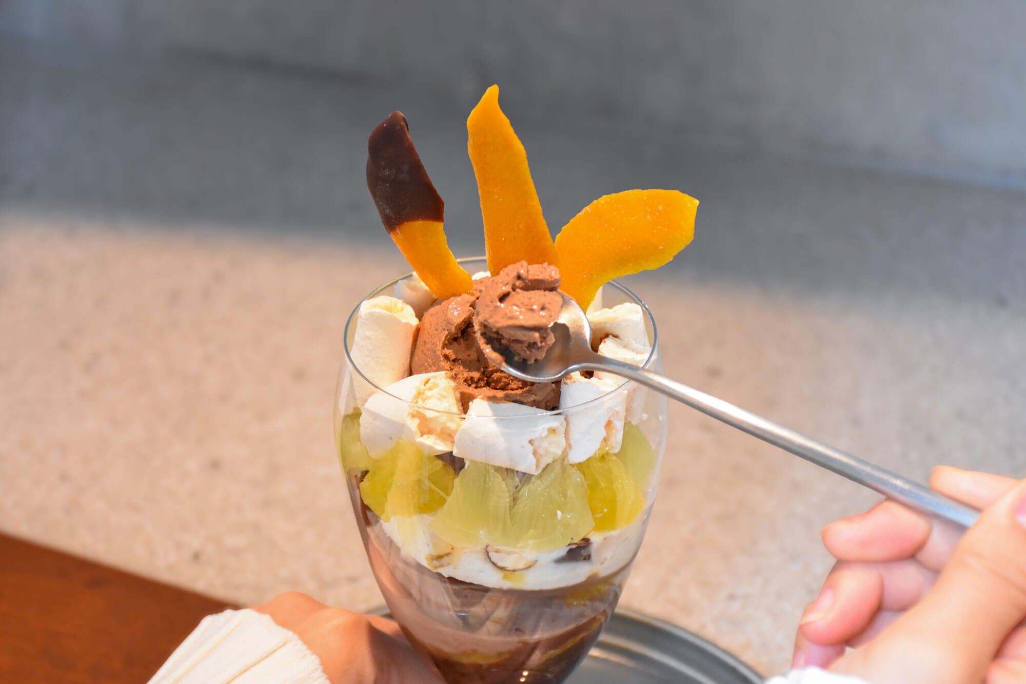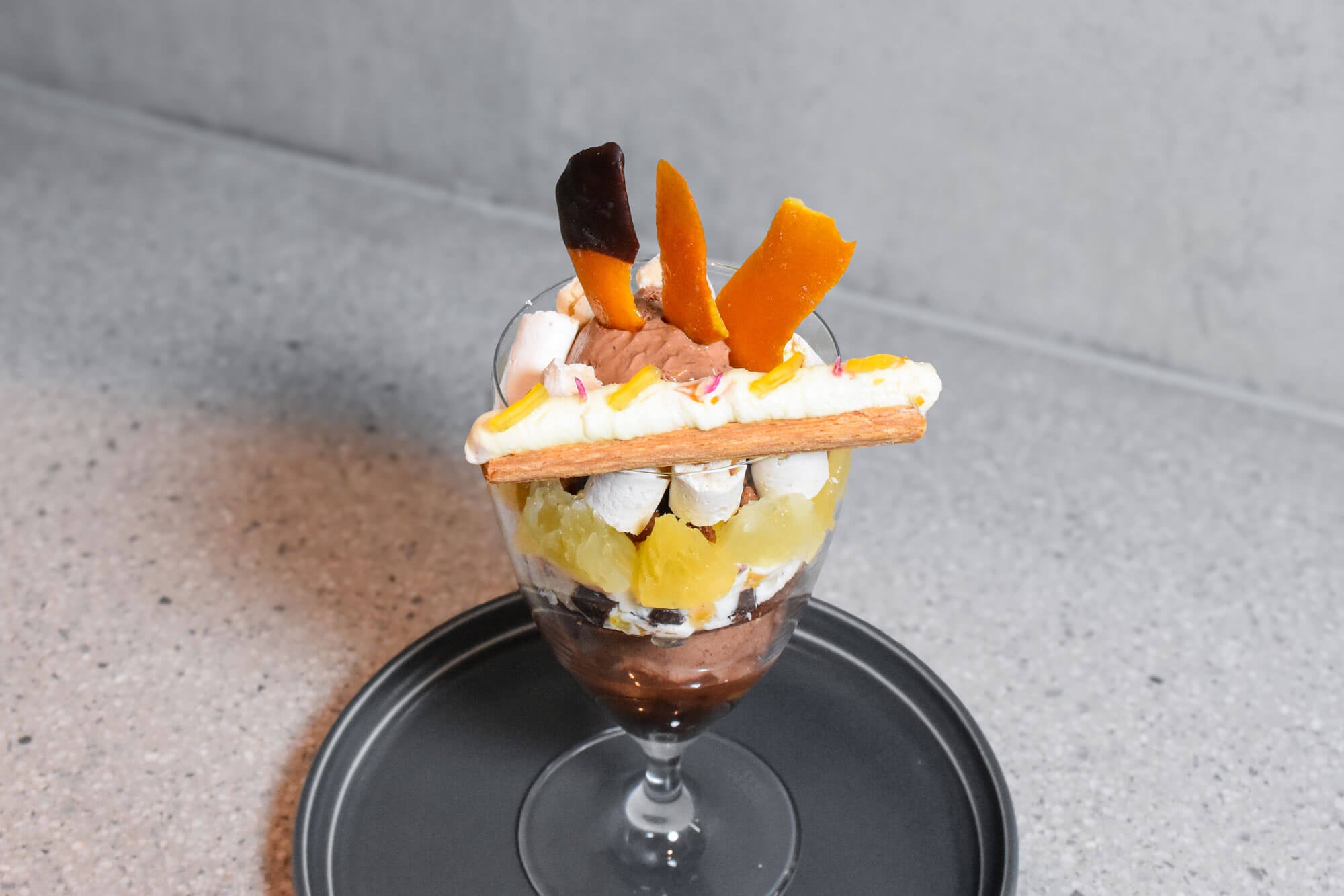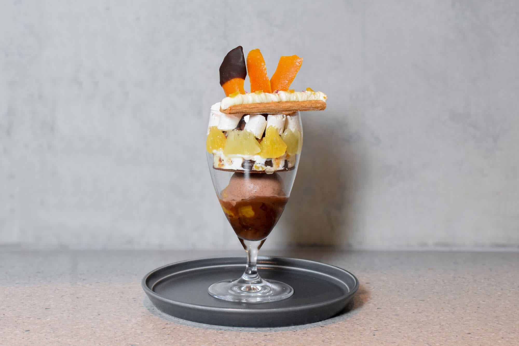 柑橘を主役に、13パーツで味わいの変化を楽しむチョコレートパフェ