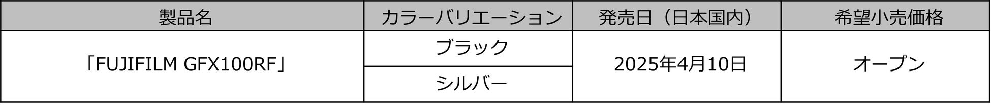 富士フイルム株式会社(本社:東京都港区、代表取締役社長・CEO:後藤 禎一)は、35mm判の約1.7倍となるラージフォーマットセンサー(※1)を搭載した「GFXシリーズ」の最新モデルとして、「FUJIFILM GFX100RF」(以下、「GFX100RF」)を2025年4月10日より発売します。