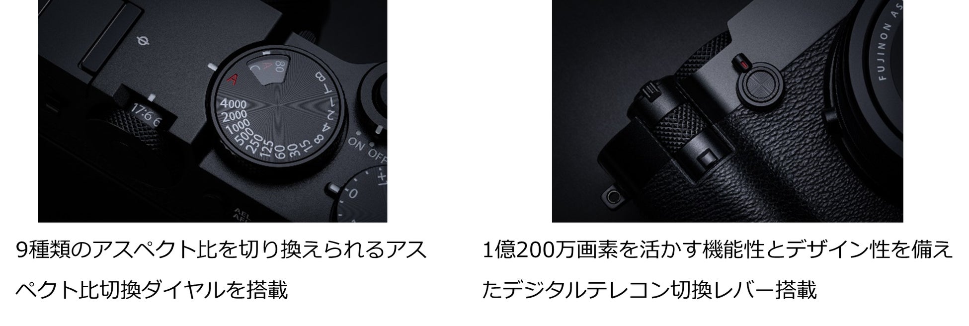 「GFX100RF」は、当社が長年提供してきた写真フィルムや、アナログカメラなどに由来する9種の多彩な撮影フォーマットをシンプルな操作で切り換えられる「アスペクト比切換ダイヤル」を初めて搭載しました。被写体や撮影意図に応じて、アスペクト比をダイヤルで切り換えて選択するというアナログな操作感が、撮影体験をより楽しくさせます。また、「GFX100RF」は当社として初めて、精密なアルミの削り出し加工を施したカメラ軍艦部を採用。レンズリングやダイヤル類、底面プレートなど細部のパーツにも同様に削り出し加工を施すことで、カメラを手に持った時に感じる金属の質感とデザインの統一感が一層高まり、所有する悦びを感じられるデザインに仕上がりました。また、新開発の35mmF4レンズ(35mm判換算28mm相当)が生み出す汎用性の高い画角と、最新のAI技術による被写体検出AF、高速・高精度AF機能により、趣味のスナップ撮影から、ルポルタージュ撮影などのプロの撮影現場までさまざまなシーンで卓越したパフォーマンスを発揮します。
