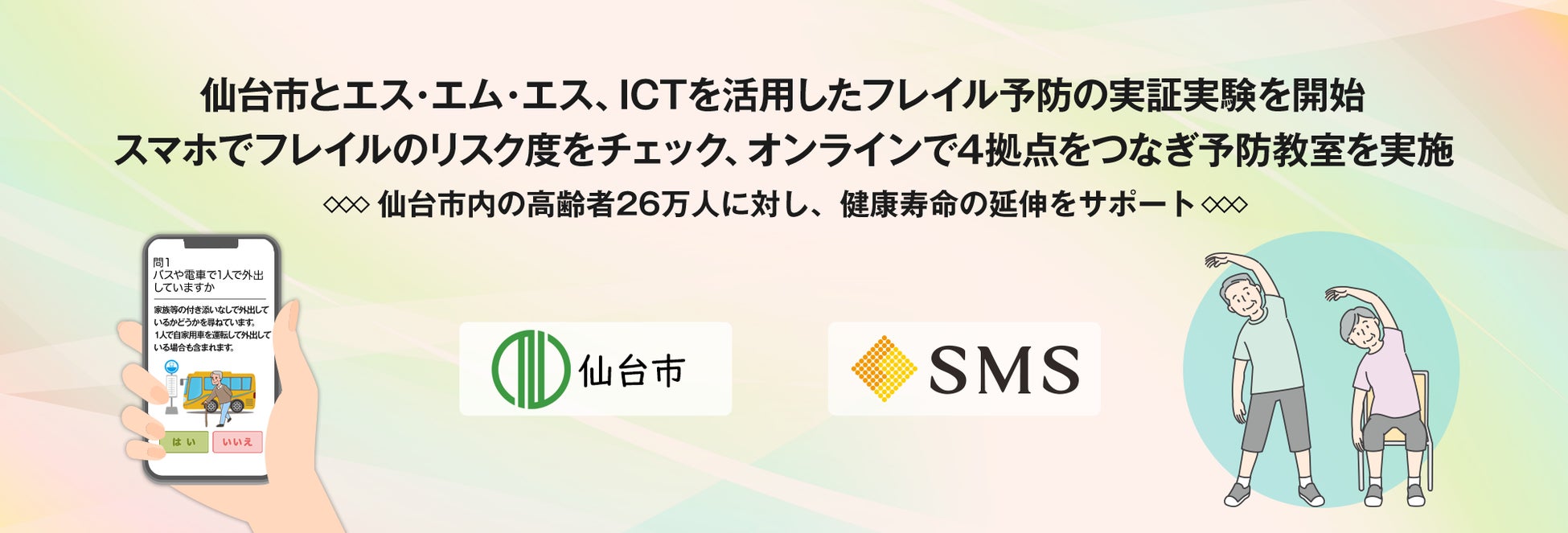 株式会社エス・エム・エス(本社:東京都港区、代表取締役社長:後藤夏樹、東証プライム、以下「当社」)は、宮城県仙台市(市長:郡和子、以下「仙台市」)にてICTを活用した高齢者のフレイル予防について、2023年1月より実証実験を開始することをお知らせします。