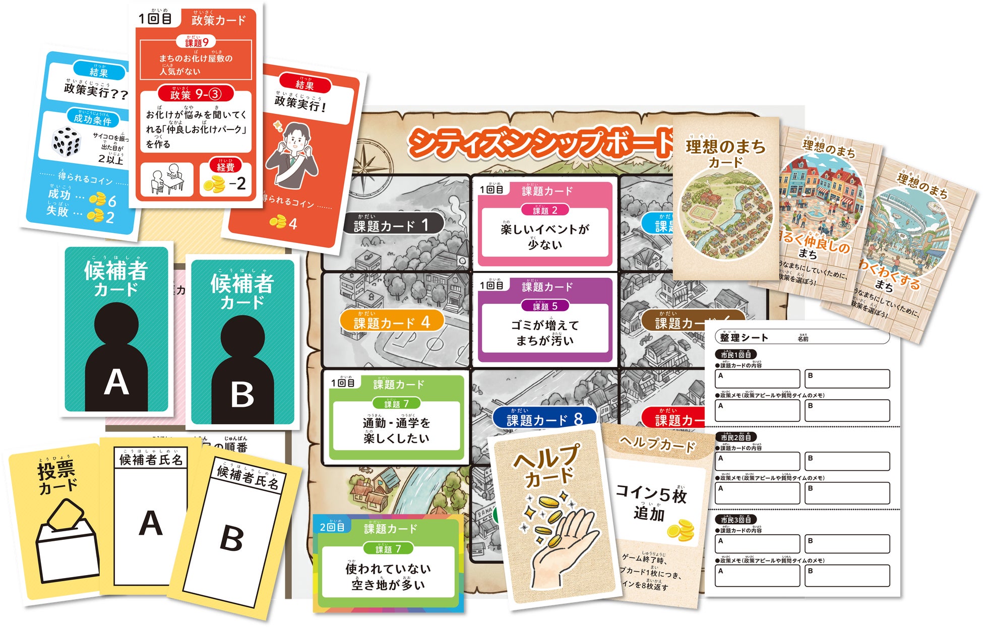 今回新たに登場した『シティズンシップゲーム』は、社会や「まち」が抱える政治的課題について多面的・多角的に考え、自らの意見を持ち、他者と対話しながら意思決定していく過程を体験できる教材です。